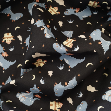The boxer shorts feature Smokey, the baby dragon or hatchling, in a number of poses, along with castles, puffs of smoke, princess crowns and crescent moons on a black background.
