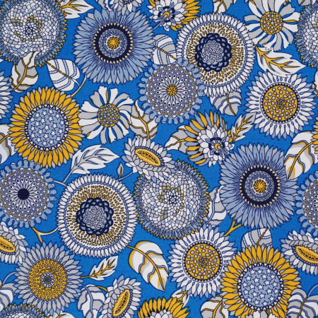The boxer shorts feature blue, yellow and white flowers on a blue background, giving a vintage vibe.