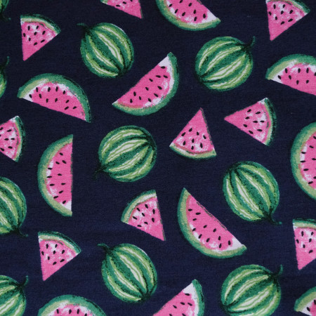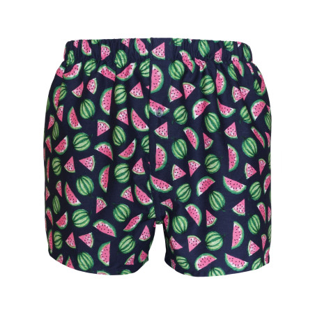 The boxer shorts feature big, juicy watermelons on a dark blue background.
