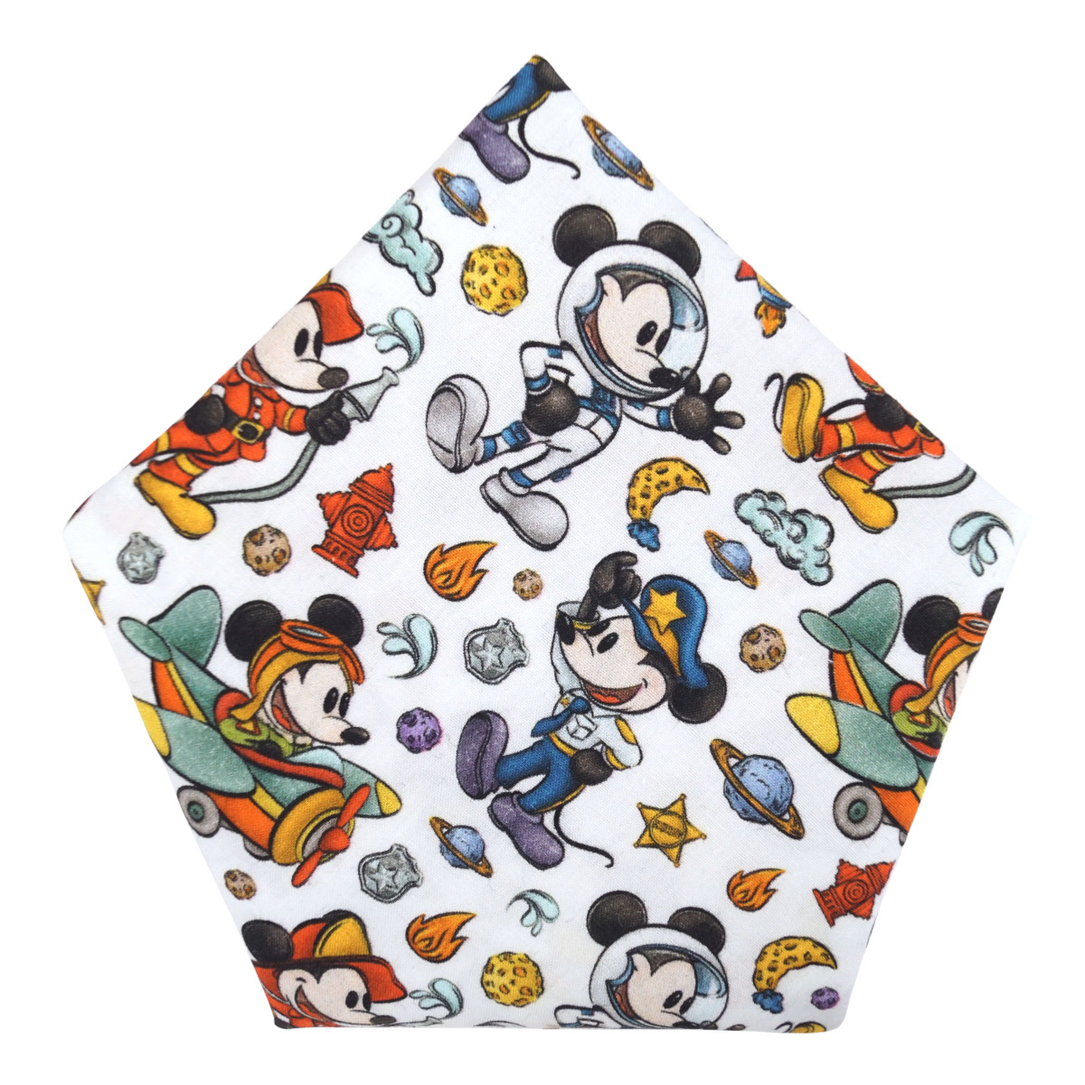 The hanky features Steamboat Willie doing it all as an astronaut, fireman, pilot and policeman.