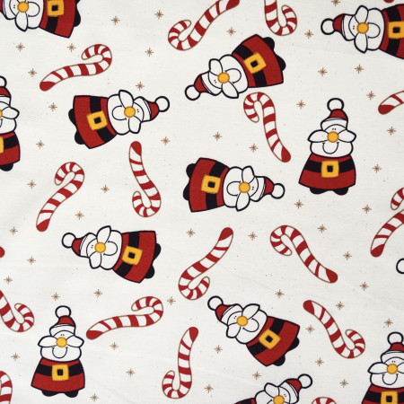 The hanky is adorned jolly santas, surrounded by candy canes, on a cream background.