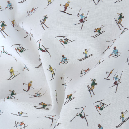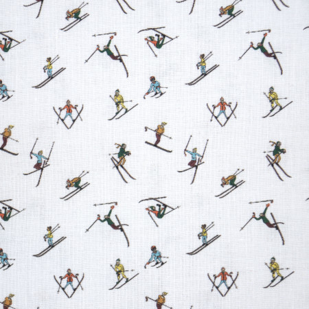The boxer shorts feature lots of tiny skiers ski jumping on a white background.