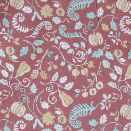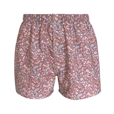 The boxer shorts feature pumpkins and other seasonal fruit and foliage on a muted background.