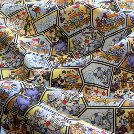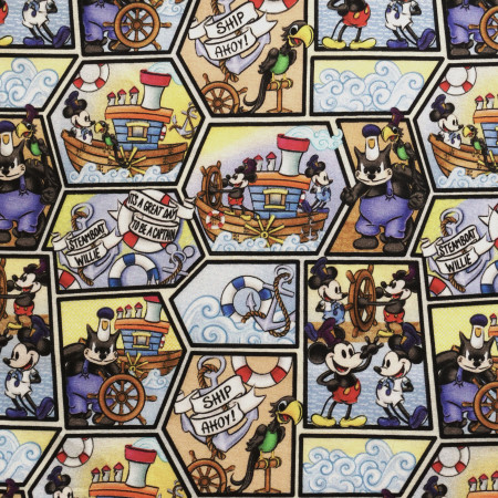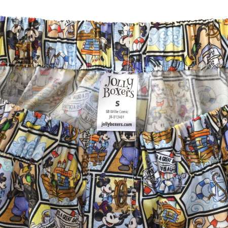 The boxer shorts feature comic strip panels of Steamboat Willie aboard his boat.