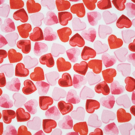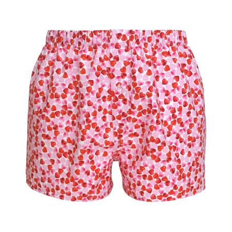 The boxer shorts feature lots of pink and red hearts on a white background.